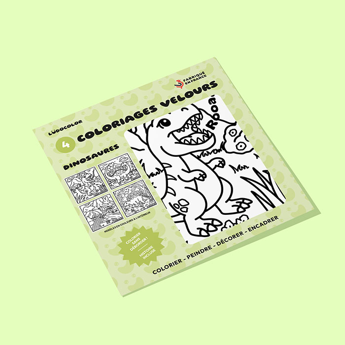 Explorez l’ère jurassique avec notre nouveau lot de 4 coloriages velours au format carré, dédié aux dinosaures les plus attachants et surprenants ! Chaque illustration met en scène un personnage unique – du petit tricératops curieux au ptérodactyle rêveur – dans un décor préhistorique riche en détails.