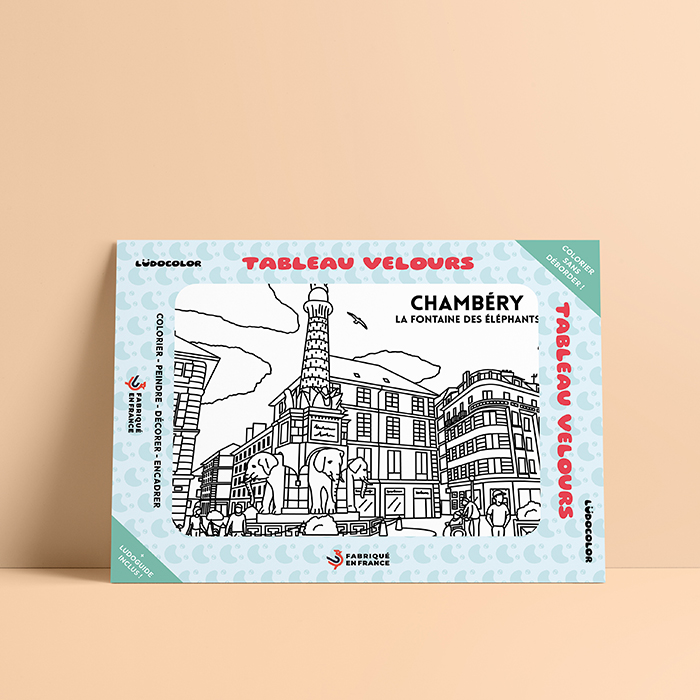 Coloriez l’icône de Chambéry ! Plongez dans l’histoire locale avec notre tableau velours à colorier de la Fontaine des Éléphants, symbole incontournable de Chambéry. Grâce à ses contours en relief, le coloriage devient facile et agréable pour les enfants comme les adultes. Feutres, crayons ou peinture : chaque éléphant prend vie sous vos couleurs. Un moment de créativité et de patrimoine, à savourer en solo ou en famille. Et toujours Made in France !