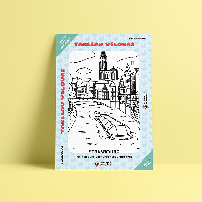 Coloriez le charme de Strasbourg ! Plongez dans l’atmosphère pittoresque de la Petite France à Strasbourg, avec notre tableau velours à colorier, illustrant ses maisons à colombages et son fleuve paisible. Grâce à ses contours en relief, le coloriage devient facile et relaxant, pour les enfants comme les adultes. Feutres, crayons ou peinture : chaque détail révèle la beauté de ce quartier emblématique. Un moment de création et de patrimoine, à savourer seul ou en famille. Et toujours Made in France !
